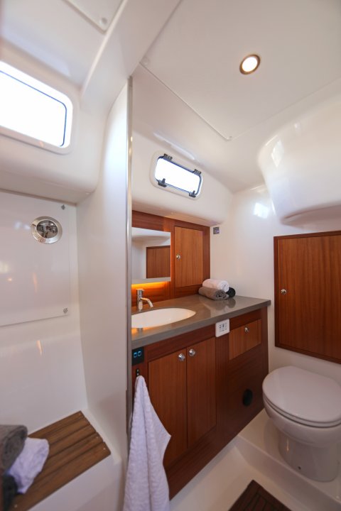 Die Linjett 36 wird über zwei komfortable und geräumige Kabinen verfügen, mit bequemen Einstiegen in die großzügigen Kojen. Die Pantry ist großzügig bemessen und bietet ausreichend Platz zum richtigen Kochen, während das Bad groß genug ist, um sich frei zu bewegen und angenehm zu duschen.