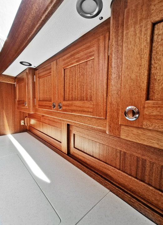 Die Pantry der Linjett 35 ist großzügig ausgestattet – mit Herd, Backofen, Kühlschrank, Doppelspüle und Doppelschränken, deren Innenausstattung speziell angepasst wurde, um Geschirr und Gläser sicher zu verstauen. Der Navigationstisch ist klassisch gestaltet, mit eigenem Sitzplatz und ausreichend Fläche für Seekarten. Das Interieur aus feinstem Teakholz ist vollständig lackiert, selbst an Stellen, die normalerweise nicht sichtbar sind.