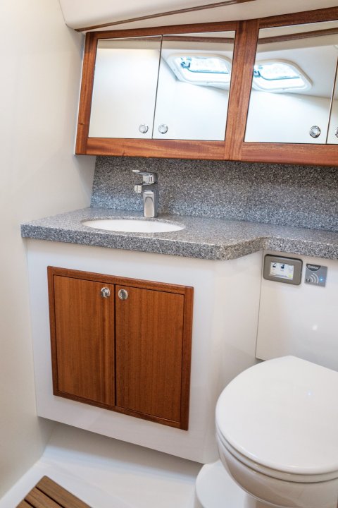 "Ännu mer imponerande än hastigheten är den suveräna styrkänslan. Återigen räcker det med minimala roderrörelser för att hålla båten på̊ kurs. Det digitala roderlägesinstrumentetet visar sällan mer än fyra grader. Inget sker hektiskt, den slanka svenskan reagerar mjukt och smidigt, accelererar i lätta byar och fortsätter lika lätt"