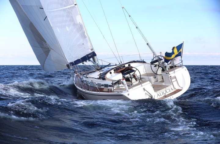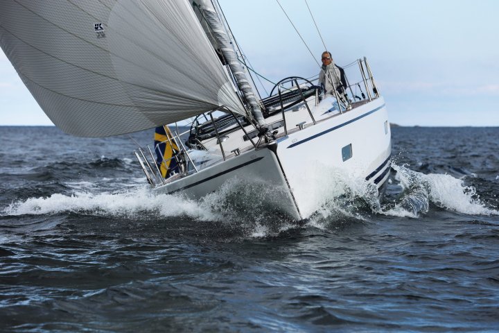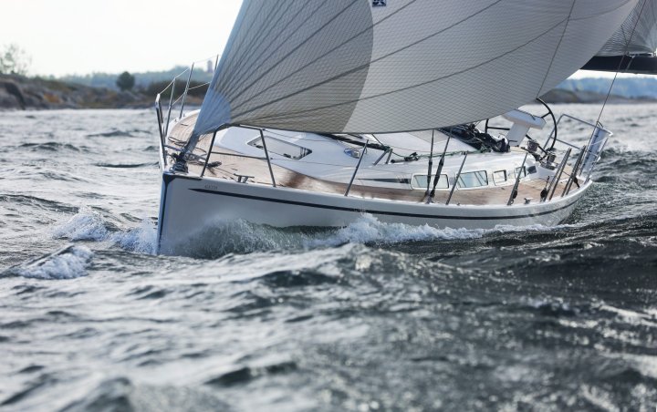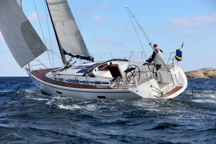 Balans och kontroll utmärker Linjett 43:ans under segel. Till detta bidrar Seldénmasten med dubbla 25 graders bakåtsvepta spridare men framför allt båtens väl avvägda balans och det optimalt intrimmade styrsystemet. Här görs inga kompromisser. Det är mycket segel för fart och höjd, samtidigt som det styva skrovet ger trygghet och lugn.